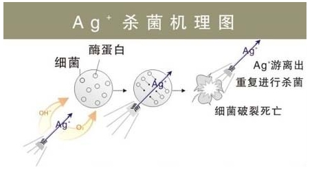 在银离子的作用下,细菌的蛋白质的合成过程变更、停止、使细菌死亡。